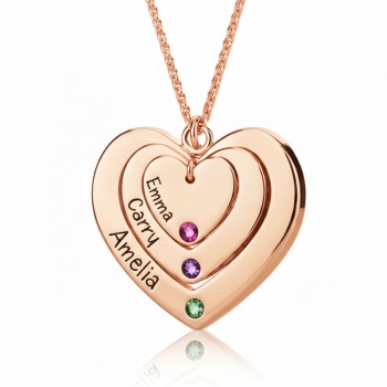 Triple Heart Necklace With Birthstones