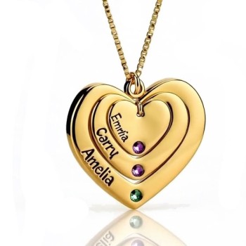 Heart Mother Birthstones Necklace Gold Plated Silver