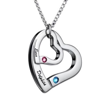 Heart in Heart Birthstone Name Necklace Gold Plated