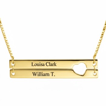 Engravable Heart Two Bar Necklace 18k Gold Plated