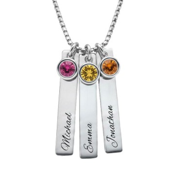 Silver Bar Necklace with Birthstone