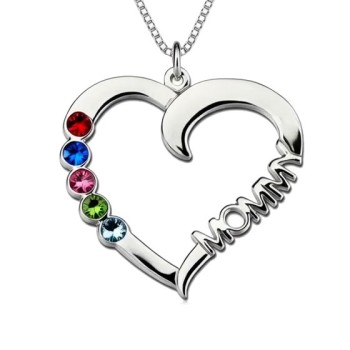 Heart Mother Birthstones Necklace Gold Plated Silver