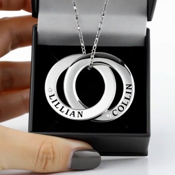 Create a lovely look with a single piece of jewelry. Our Engraved Family Necklace with 2-6 Circles! Meaningful and stylish, it offers lots of details to love. This personalized silver necklace lets you customize with up to 6 inscriptions – one for each and every ring! It’s the perfect way to celebrate family, friendship, and so much more.